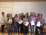Bei ihrer Begrüßung zum Faschingsfrühstück stellte Vorsitzende Andrea Fleischmann die neue Bekleidung für die Frauenbundfrauen vor - ein luftig, bequemes Kleid in königsblau mit passender Perücke. Während sich die Mitglieder im gut besetzten Pfarrsaal beim leckeren Frühstücksbuffet stärkten startete das Programm mit dem ersten Highlight - der Wallfahrt zum heiligen Schickanus. Mit viel Liebe zum Detail hatten sich 5 Damen als alte Jungfern verkleidet und beteten innbrünstig um einen Mann: "Oh heiliger St. Schikanus, so hör uns doch o und schick uns und schick uns doch endlich an Mo". Für diese tolle Einlage ernteten sie tosenden Applaus. Lustige Geschichten und Witze hatten Marie-Luise Ziegler, Maria Gremmer und Marianne Dullinger vorbereitet, welche lautes Gelächter im Saal verursachten. Dank der tollen Vorbereitung durch die Vorstandschaft, sowie bester Verpflegung inklusive Krapfen und Sekt herrschte den ganzen Vormittag bei den Frauen eine heitere, ausgelassene Stimmung. Miteinander feiern, egal ob 80, 50 oder junge Mutter mit Kind - in der Gemeinschaft beim Frauenbund in Essenbach hat es wieder einmal hervorragend funktioniert.